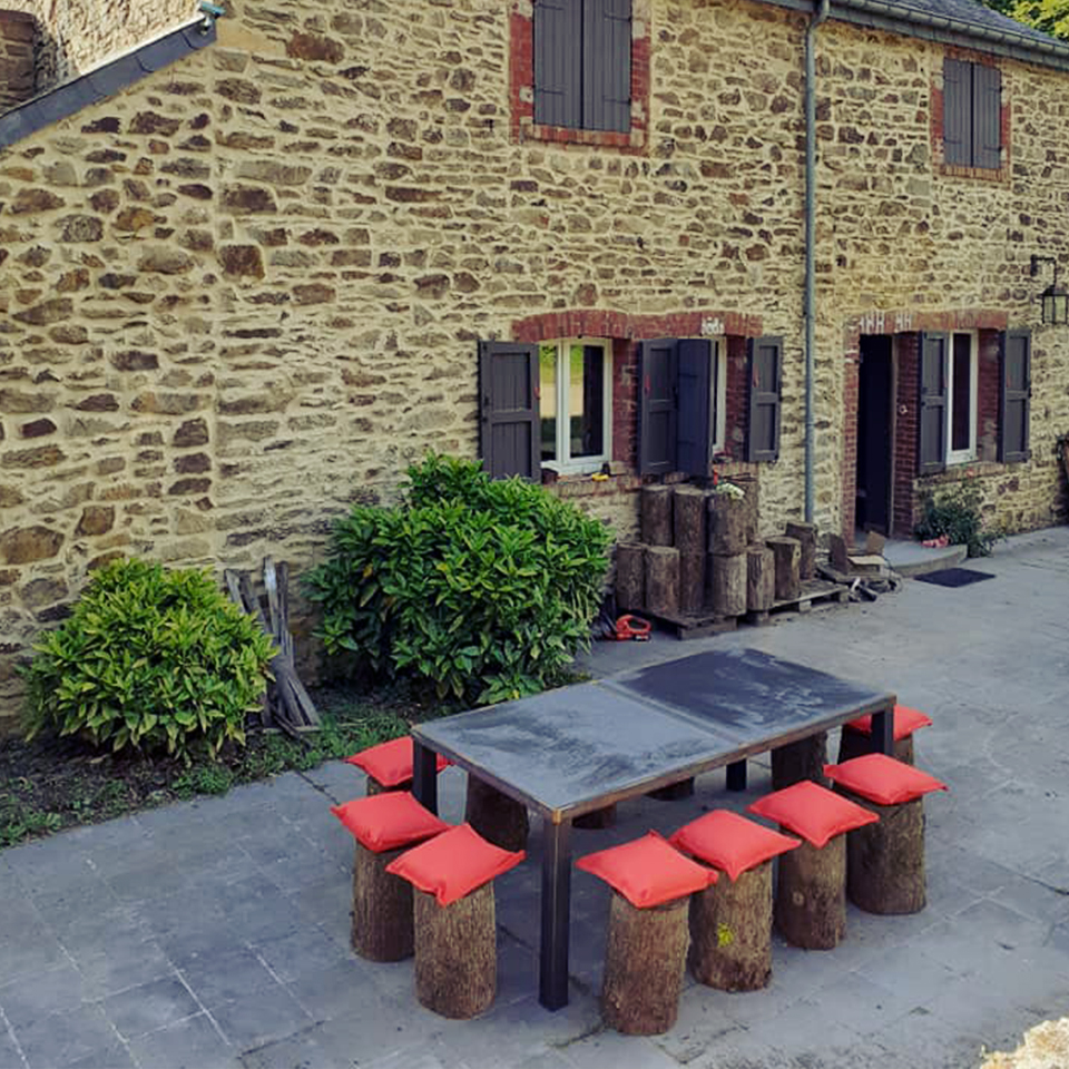 Zeer robuuste tafel met 2 basaltstenen bladen van elk 1m²