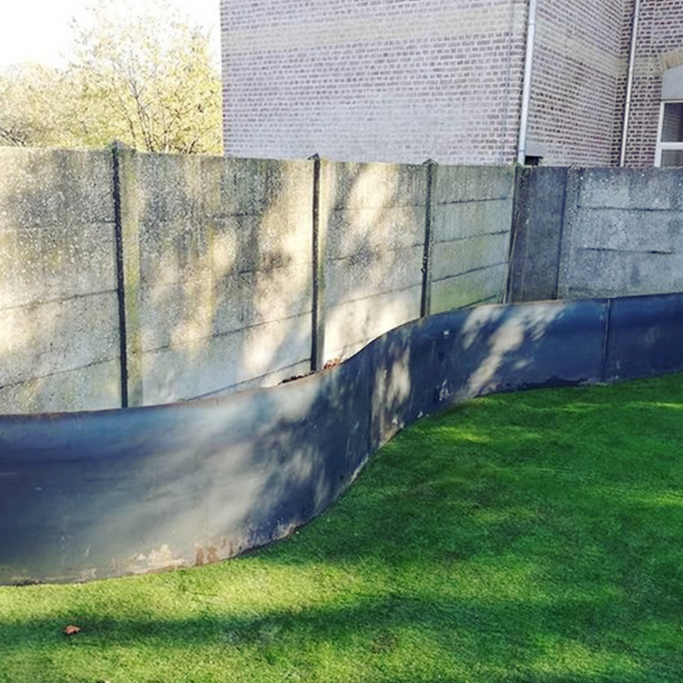 CorTen staal "wave" ter plaatse gevormt. Ontwerp door Acacia tuinen Lievegem.