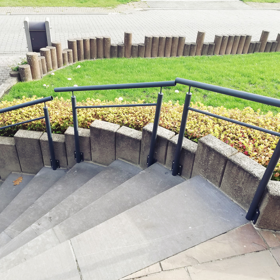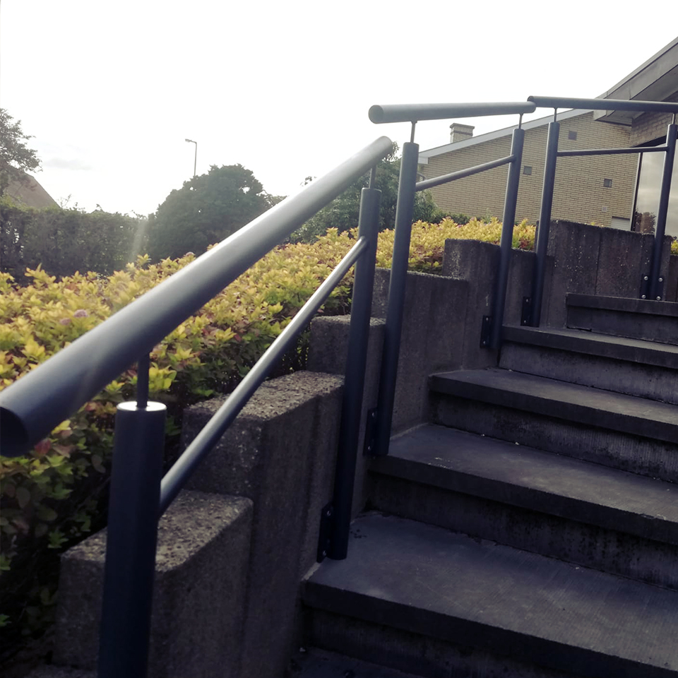 Leuning geplaatst ter ondersteuning voor een veilig gebruik van de trap
