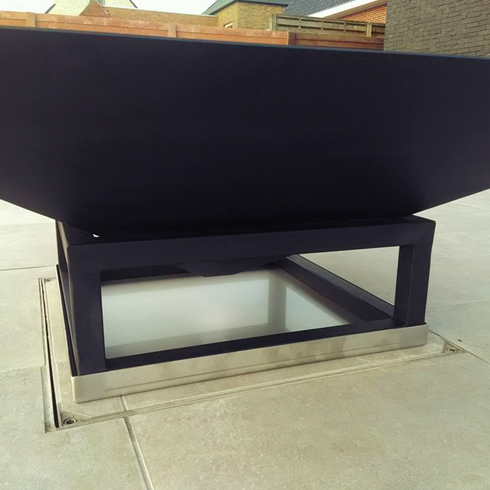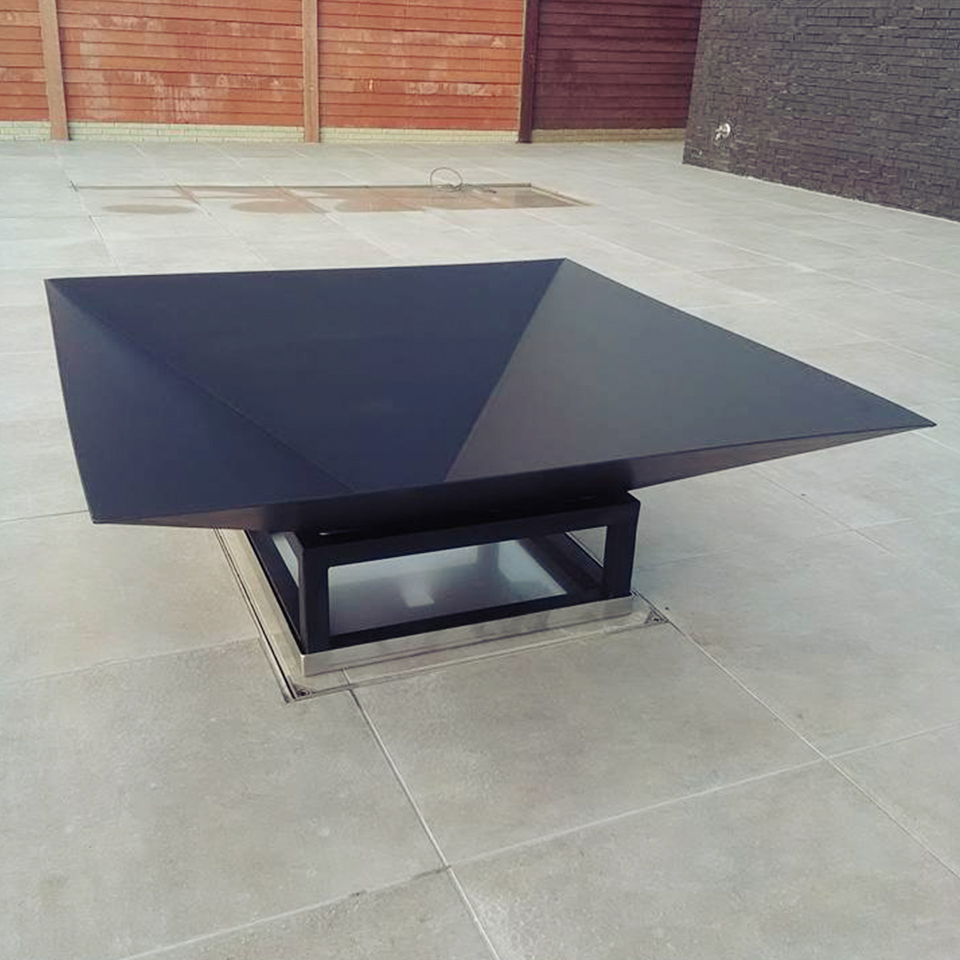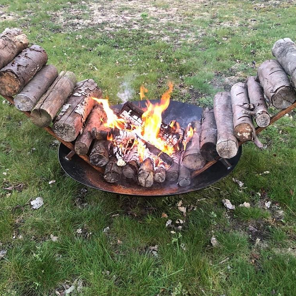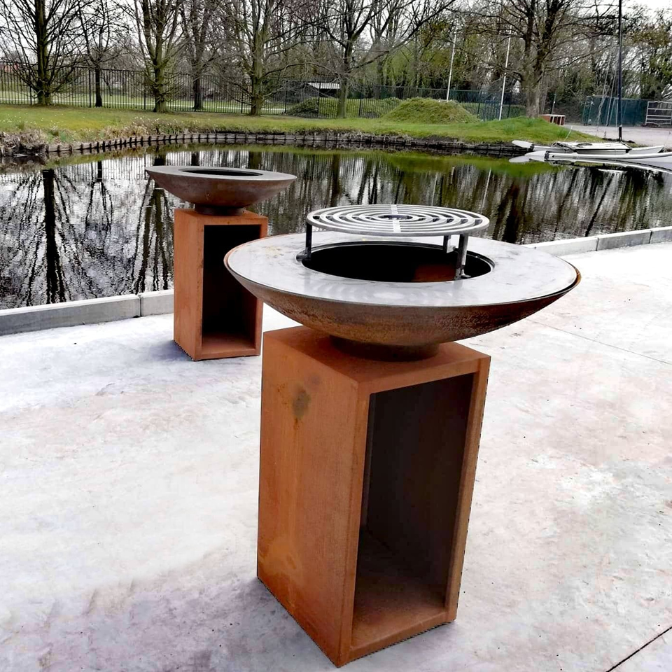 Vuurschaal met onderstel en inox as schaal. Plaatstaal 3mm dik voor jarenlang plezier. Alle ideeën zijn bespreekbaar. Een uitbreiding om te kunnen grillen op de hete kolen behoort tot de mogelijkheden.