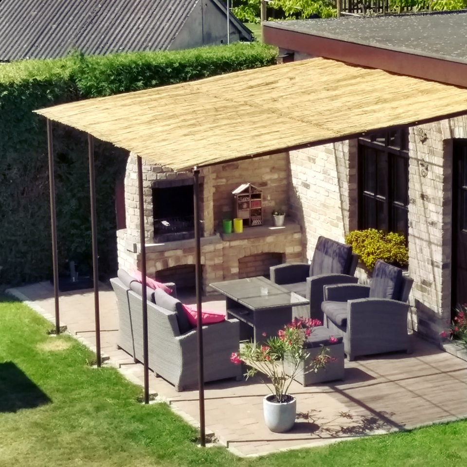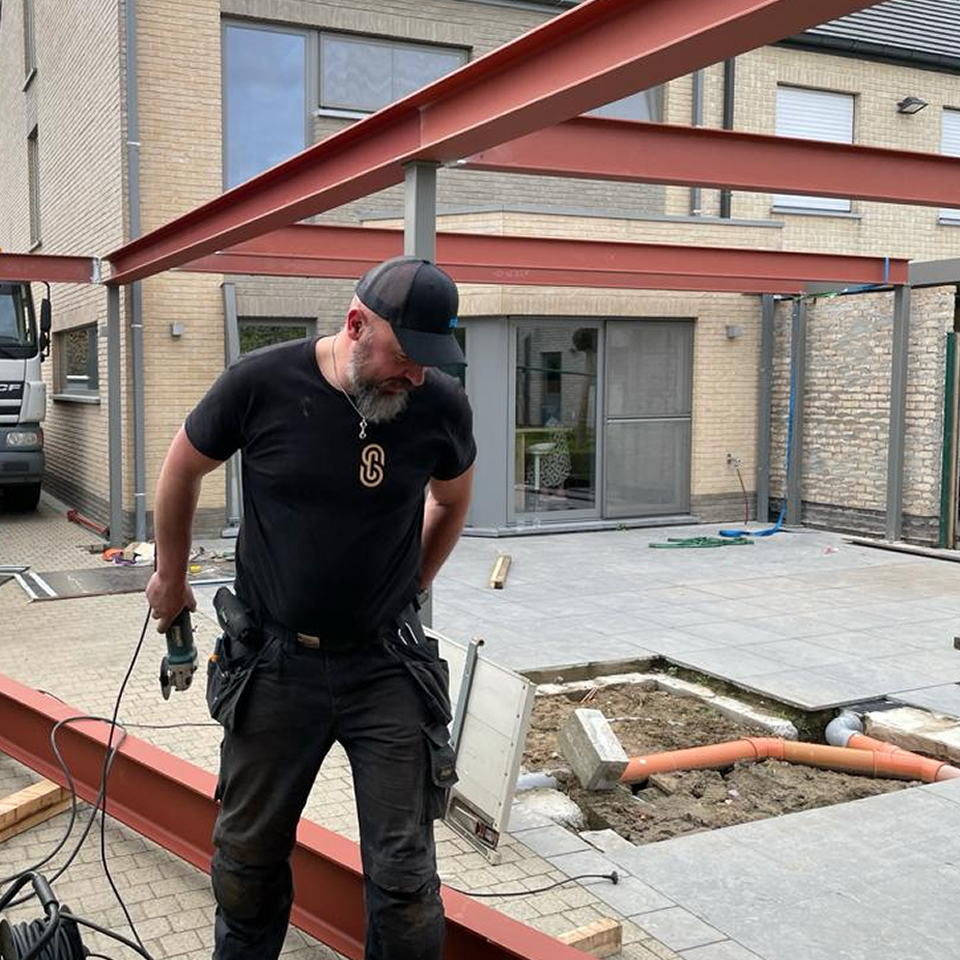 Productie en plaatsing terrasoverkapping in metalen structuur